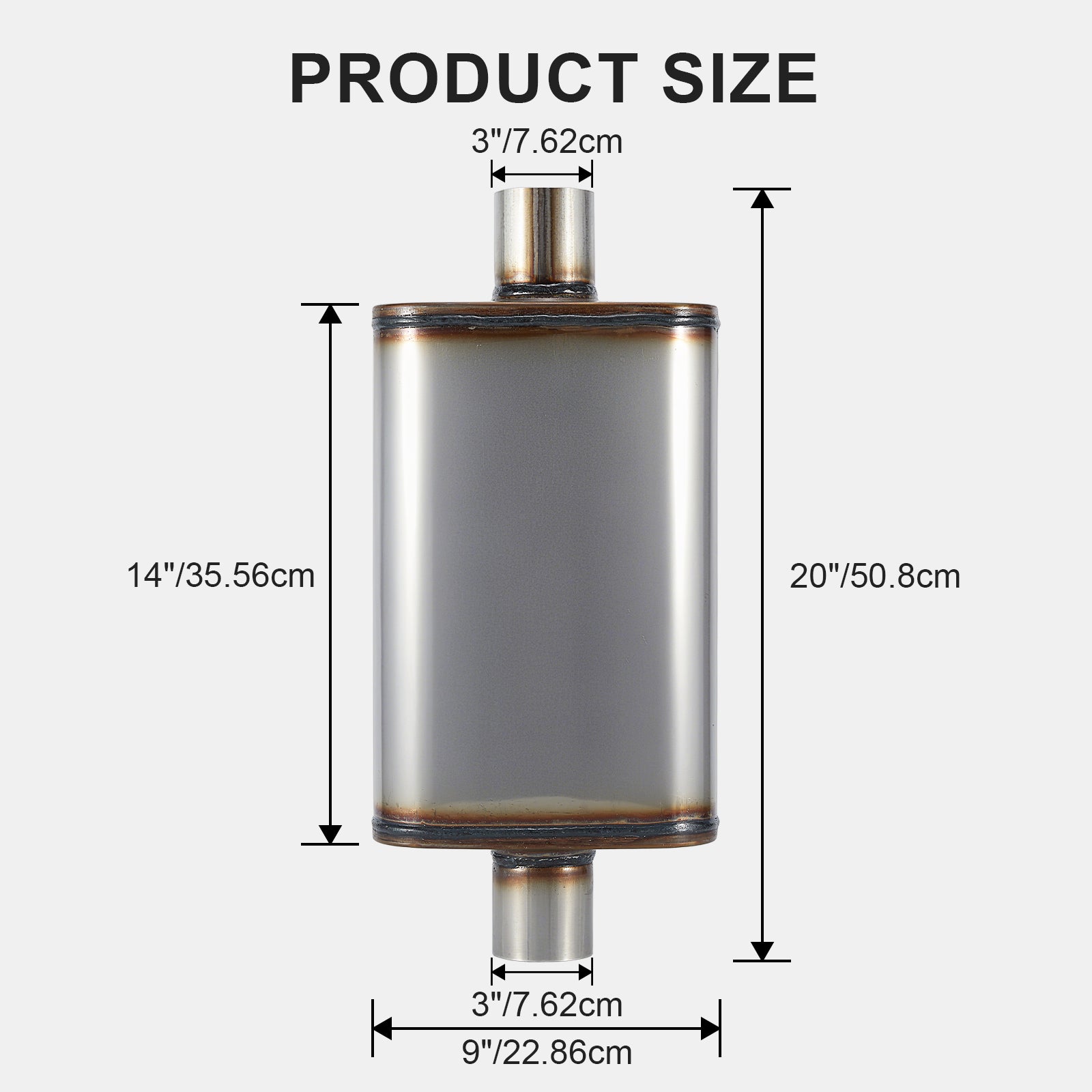 Exhaust Muffler Universal 409 Stainless Straight-Through Performance Muffler for Cars Trucks, 2.5" Inlet/Outlet,3" Inlet/Outlet, Overall Length 20"