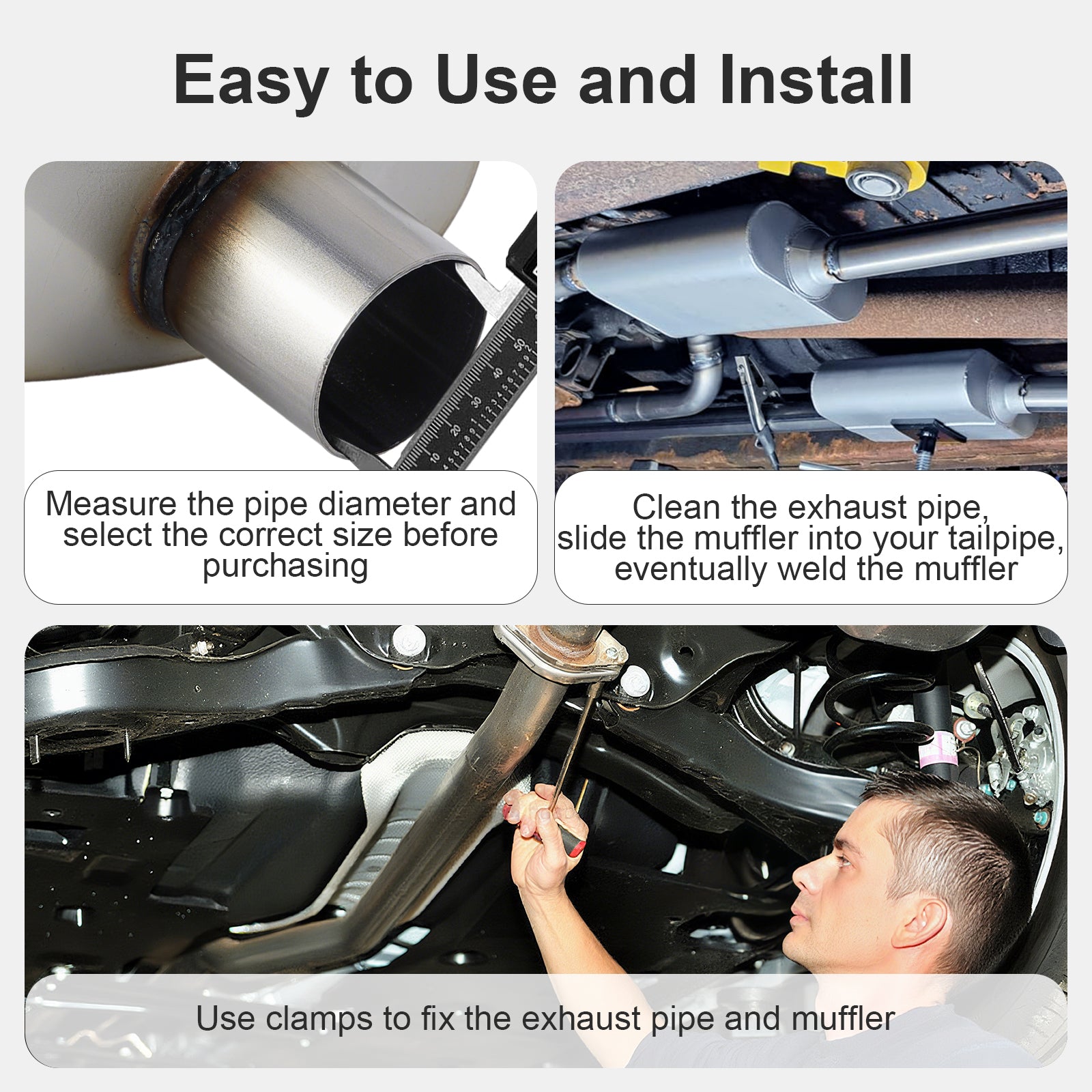 • WIDE COMPATIBILITY: This universal muffler is suitable for a variety of common vehicle types, including car, trucks, and SUVs, meeting the exhaust system upgrade needs of most vehicles.