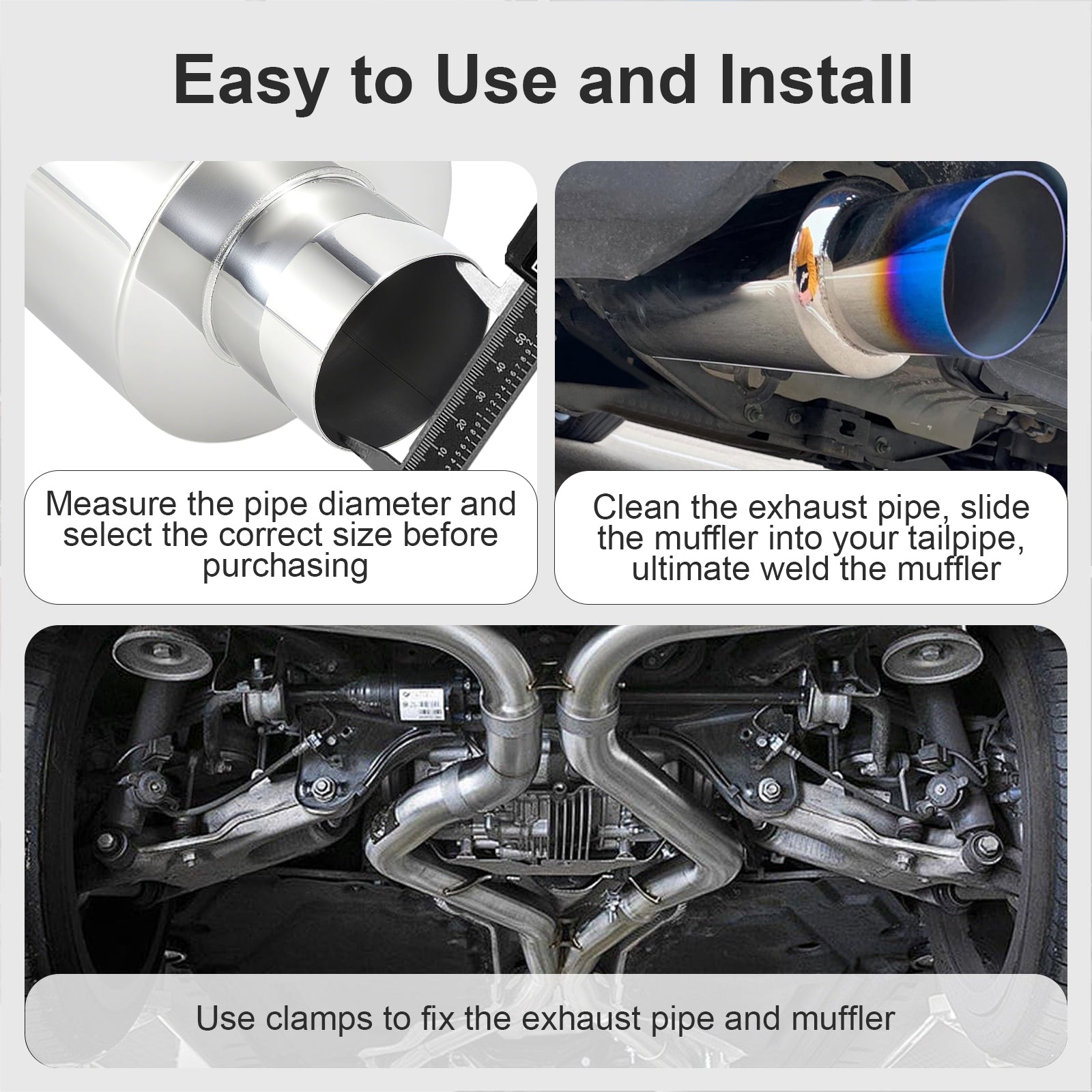 - WIDE COMPATIBILITY: This universal muffler is suitable for a variety of common vehicle types, including car, trucks, and SUVs, meeting the exhaust system upgrade needs of most vehicles.