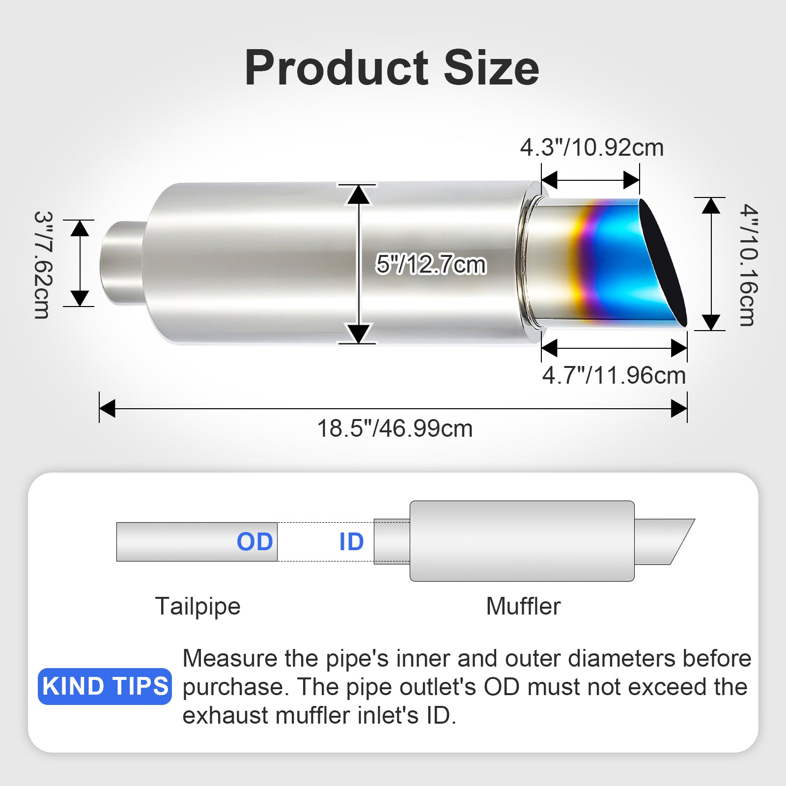 - DURABLE STAINLESS STEEL: Universal exhaust muffler constructed from high-quality 409 stainless steel, it offers strong corrosion resistance and maintains structural strength in high-temperature environments, significantly extending service life and reducing moisture accumulation.