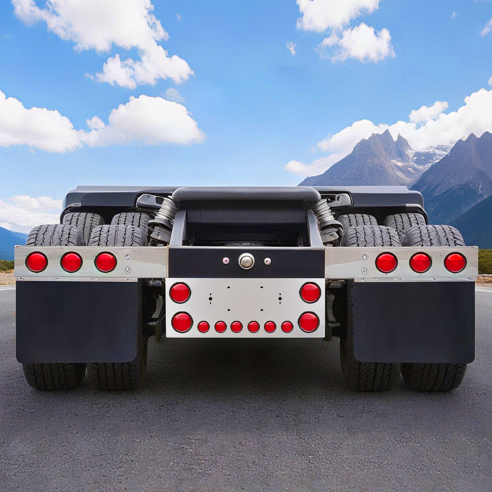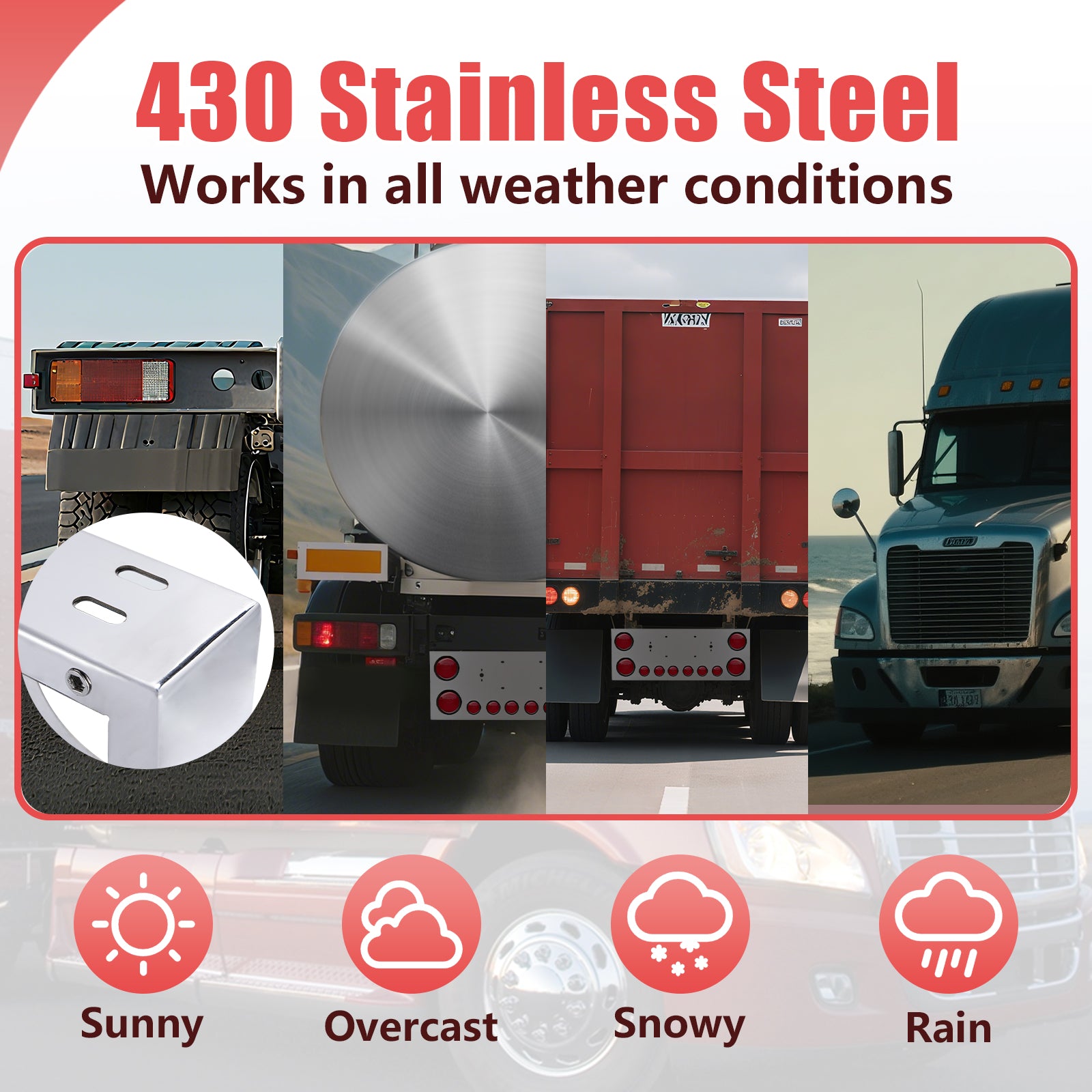 - Updated Design - Our stainless steel rear tail light panel with chrome finish for a mirror effect with 4.49x4.49 inch and 2.76x2.76 inch light holes is designed to instantly enhance the recognition of your semi-truck by adding aesthetic appeal and practicality.